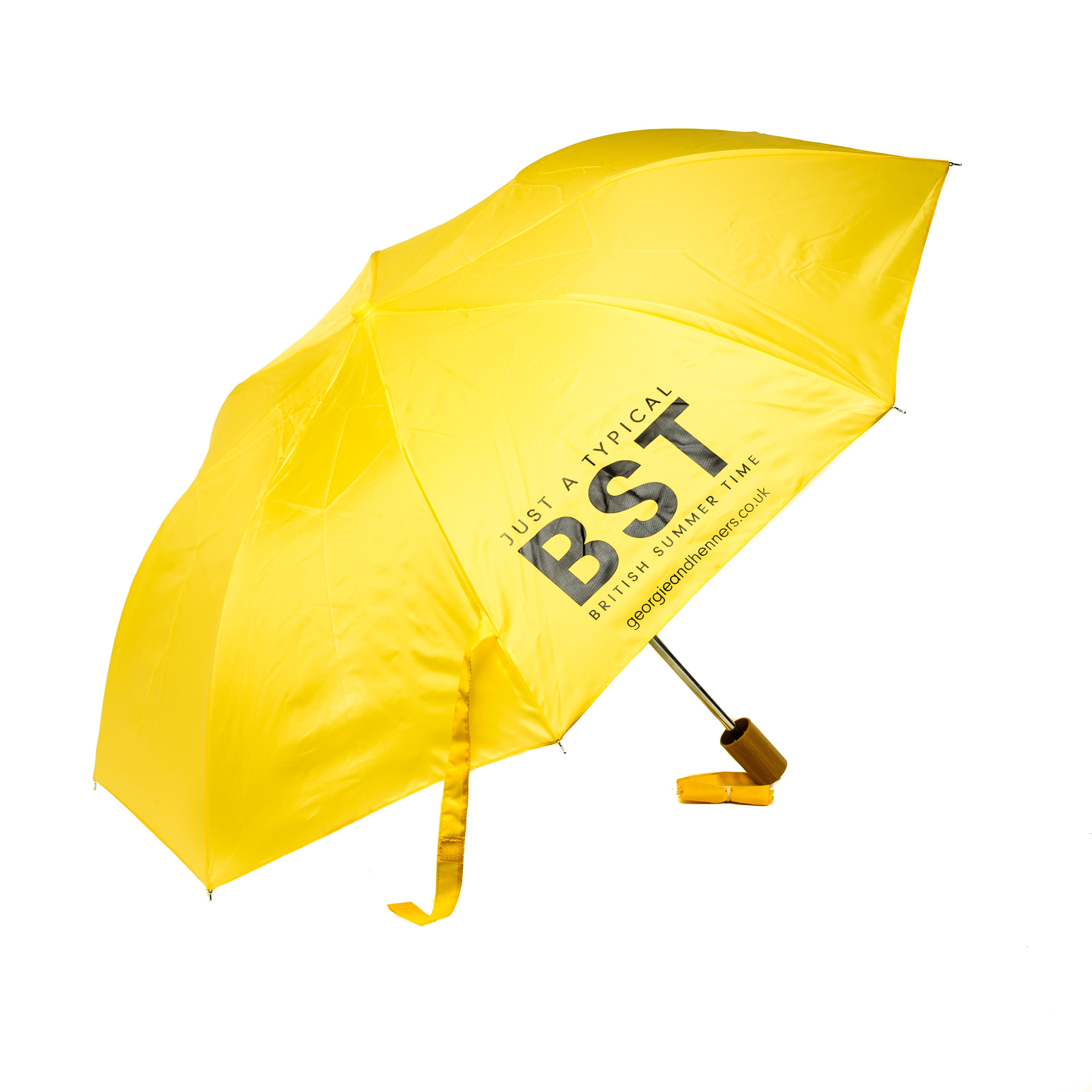 In a cheery bright yellow and printed with the slogan of our popular BST gin, this 20 inch, folding umbrella is perfect to keep handy and covers all bases in case of a sudden downpour.